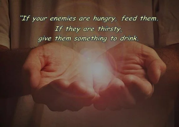 Our Scriptures tell us that if you see your enemy hungry, go buy that person lunch, or if he’s thirsty, get him a drink. Your generosity will surprise him with goodness. Don’t let evil get the best of you; get the best of evil by doing good.” Romans 12:17-21, The Message