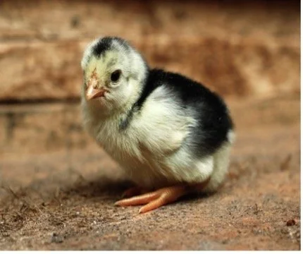 Inside the cage was a darling baby chick.
