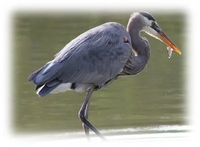 The creek near my home is a magnet for waterfowl. I see ducks on every morning walk, of course, and Canada geese in season. But my favorite is the great blue heron. I love to spot one of these gangly waders standing stock-still in the babbling stream, fishing with the patience of Hemingway’s long-suffering character in The Old Man and the Sea.